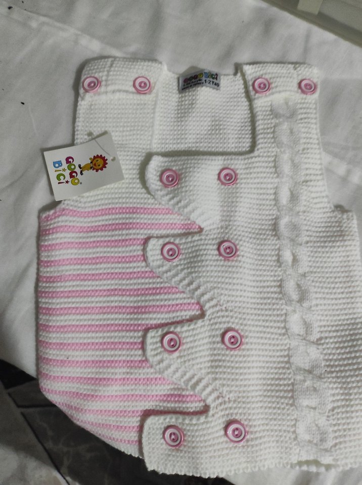 Beyaz renkli, nakışlı ve düğmeli kız çocuk süveteri, örgü kumaştan yapılmıştır ve vücuda oturan kesime sahiptir.