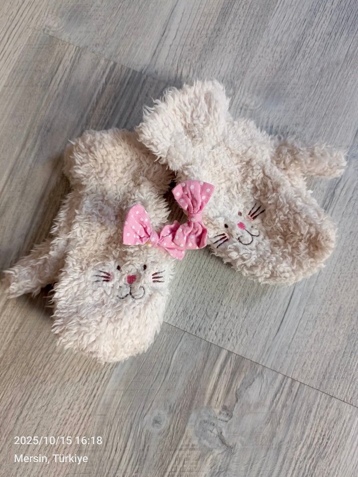 Kız çocukları için beyaz renkte, peluş ve nakış detaylı, pastel bohem tarzında yumuşak ve sıcak eldiven.