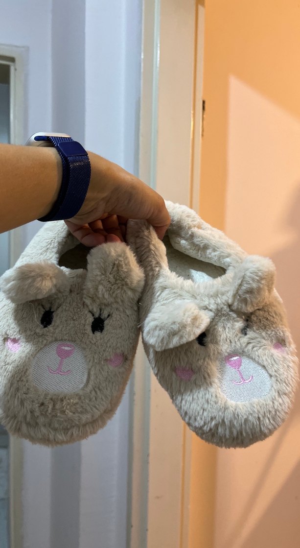 Nakışlı hayvan yüzü ve kürk detaylı, kız çocuklar için yumuşak beyaz peluş terlikler, rahat gündelik kullanım için uygun. Numarası 33/34