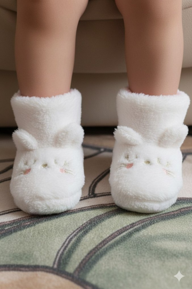 Kız Çocuk Beyaz Nakışlı Sıcak panduf