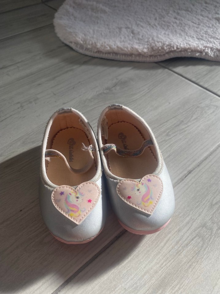 Beyaz renkli, nakışlı tek boynuzlu kalp detaylı, tokalı kız çocuk babeti. Rahatlık için kauçuktan üretilmiştir.