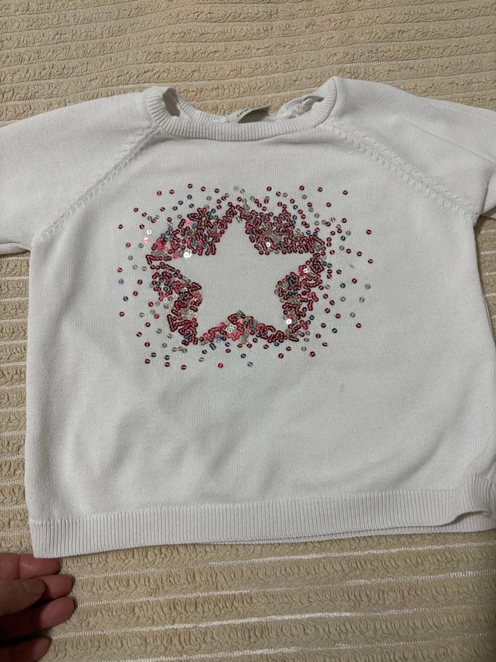 Yuvarlak yaka, uzun kollu beyaz triko kazak. Nakışlı yıldız ve boncuk detaylarıyla bol kesim, günlük sokak stili için uygundur. ⭐5,6 yaş LCW beyaz