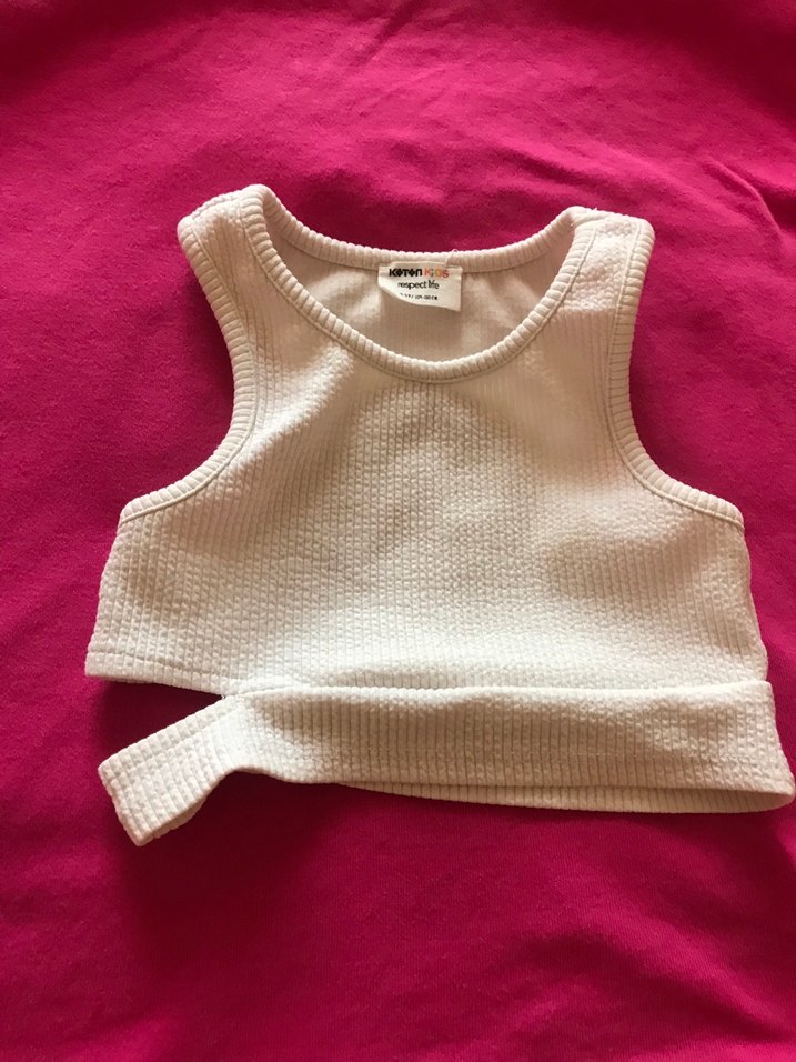 Kız çocukları için beyaz, kolsuz, yüksek yakalı ve fitted kesim örgü crop Düz ve desensiz, sokak stiline uygun yumuşak dokuda.