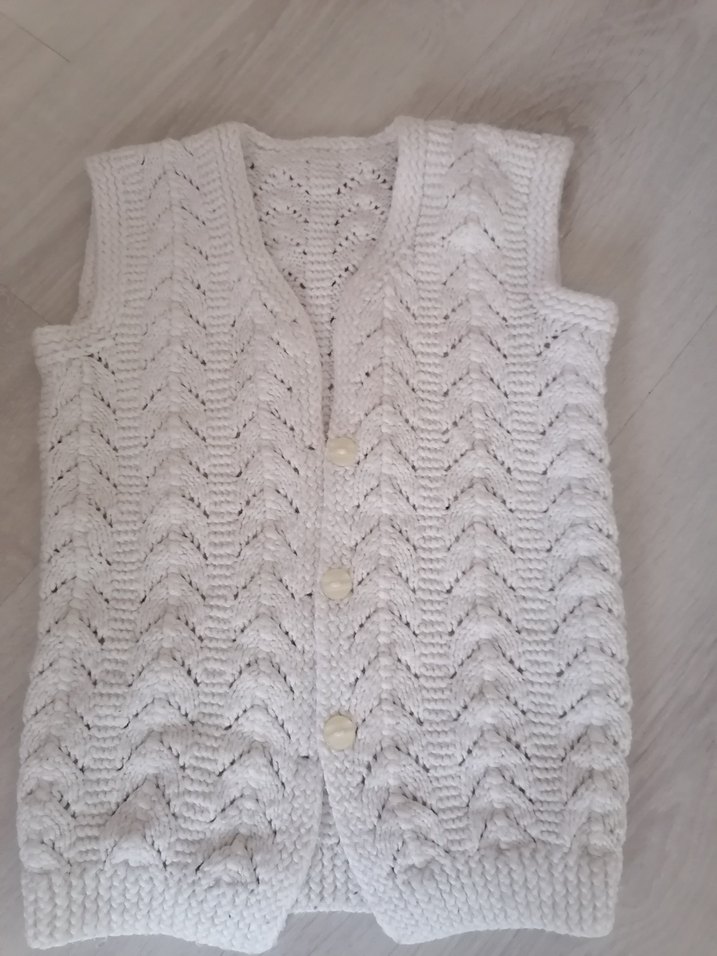 Kız çocuklar için, V yaka, örme ve kolsuz beyaz süveter. Normal kesim ve düz desene sahiptir.
