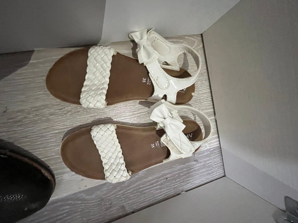 Kız çocukları için beyaz örgülü bant ve fiyonk detaylı bağcıklı tasarıma sahip, dayanıklı kauçuk malzemeden yapılmış bohem tarzı sandaletler.