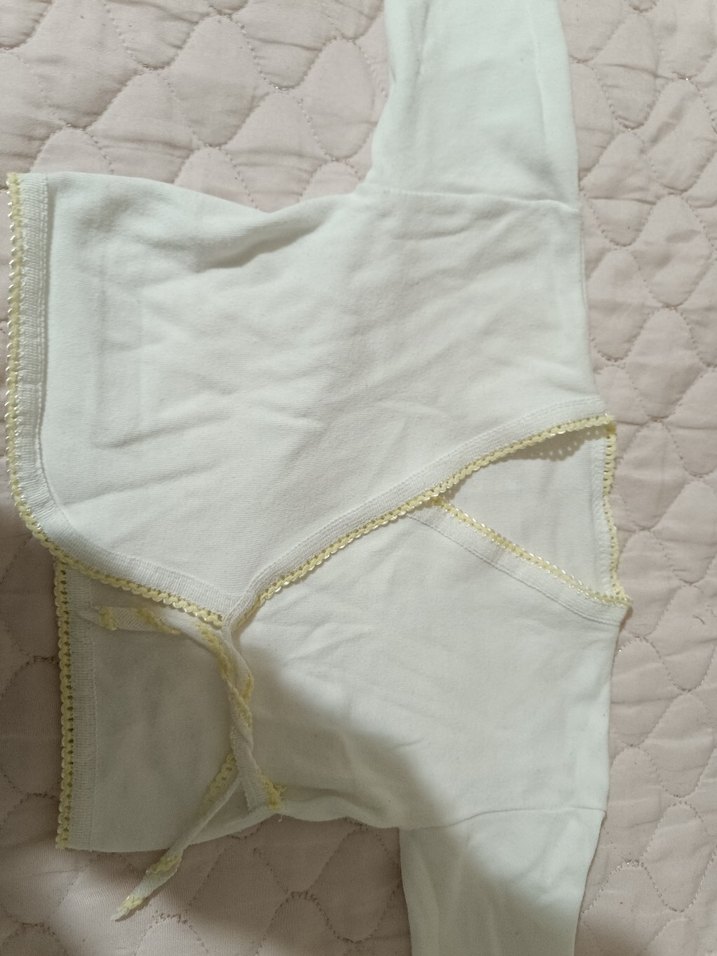 Pamuklu, uzun kollu, düğmeli ve V yakalı kız çocuk bolero. Fitted kesim ve sade pastel beyaz renkte, bohem tarzda.