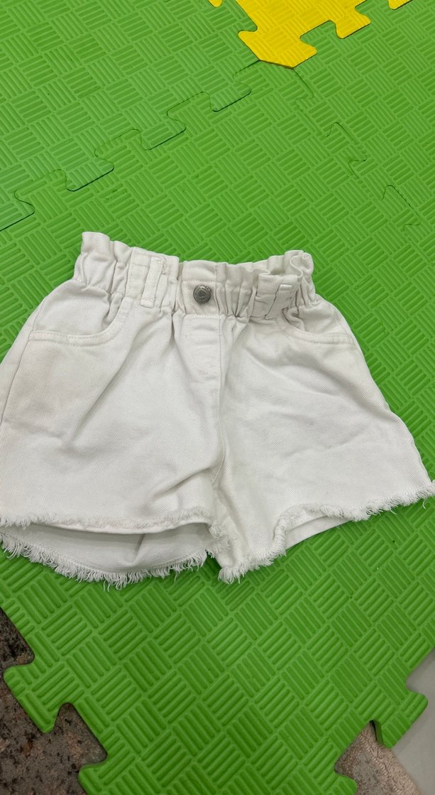 Kız çocuklar için beyaz pamuklu, bol kesim şort. Fırfır detayları ve sade, sokak tarzı görünümüyle rahat kullanım sunar.