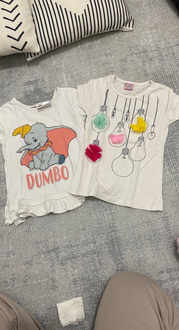 Kız çocukları için açık beyaz pamuklu, kısa kollu ve bol kesim tişört. Renkli baskılar ve düğme detayları bulunur. Yuvarlak yaka, rahat kullanıma uygundur.