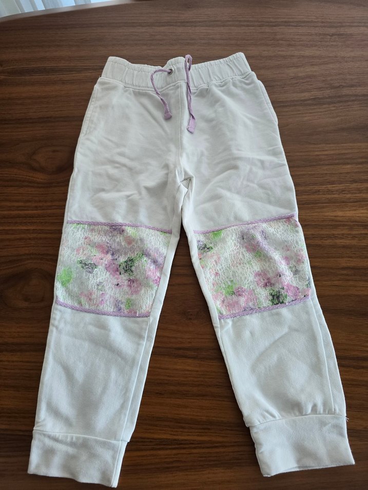 Kız çocuklar için pantolon, rahatlık sağlayan lastikli bel ile. Basit ve temel tasarım, hafif tonlu, günlük kullanım için uygun.