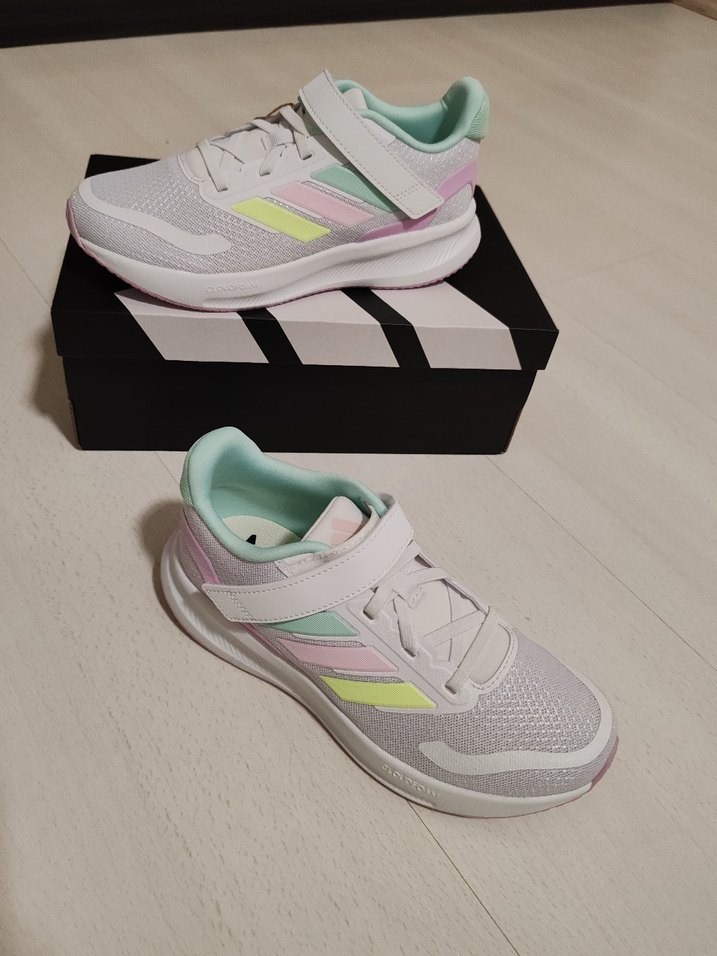 Kız çocukları için beyaz tabanlı, pastel desenli ve kolay giyilen velcro bantlı spor ayakkabılar. Dayanıklı kauçuk tabanlı, sokak stili için uygun.