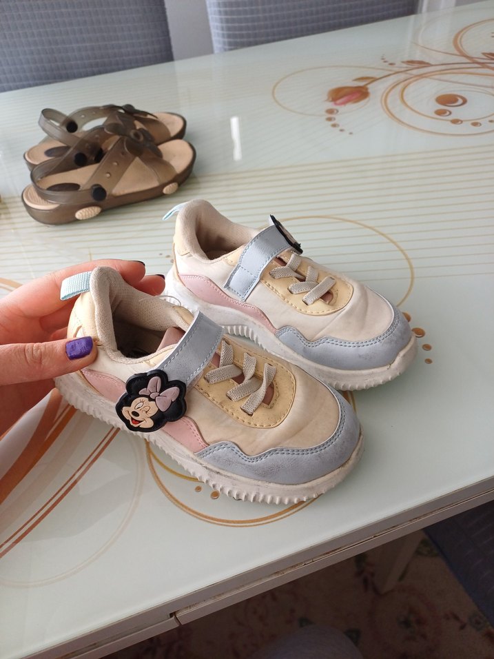 Beyaz pastel renkli, baskılı kız çocuk spor ayakkabısı. Kolay giyilen cırt cırtlı ve kauçuk tabanlıdır, sokak stili için uygundur.