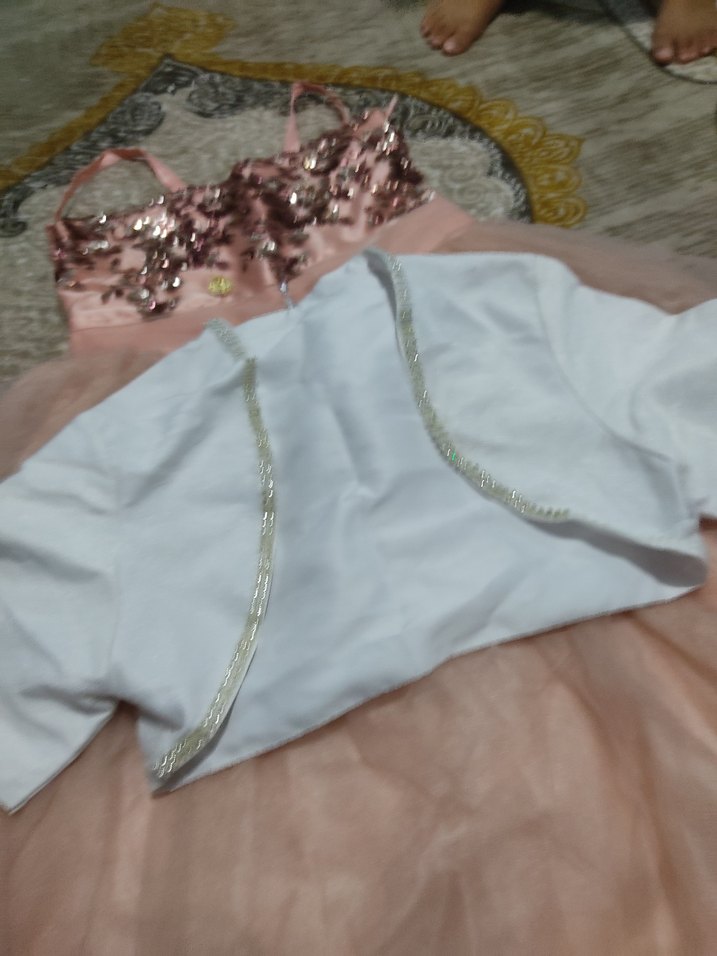 Kız Çocuk Beyaz Payetli Uzun Kollu Bolero ve elbise