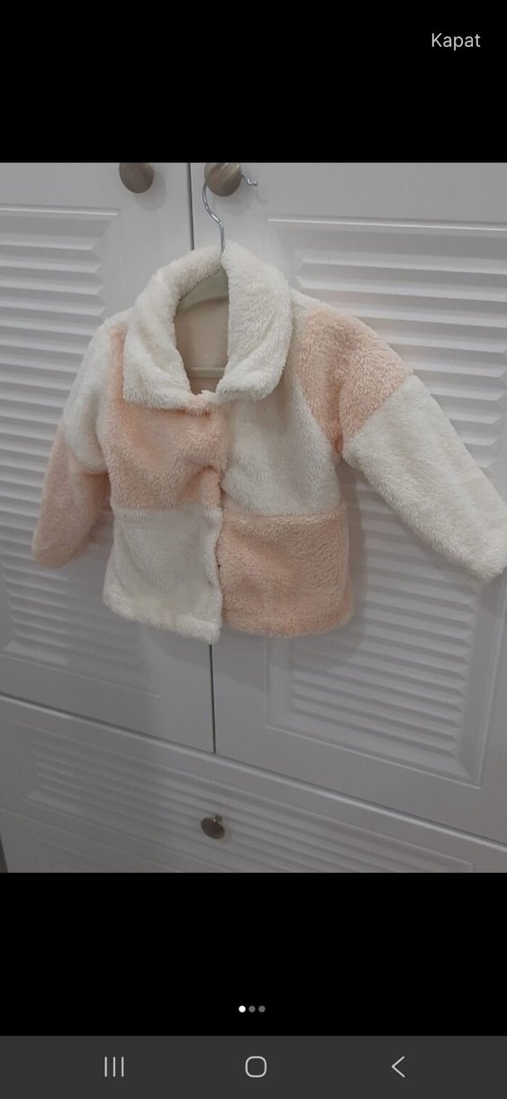 Bu bol kesim kız çocuk montu, yakalı ve pastel beyaz kürk detaylı, yumuşak ve sıcak kumaştan yapılmıştır.