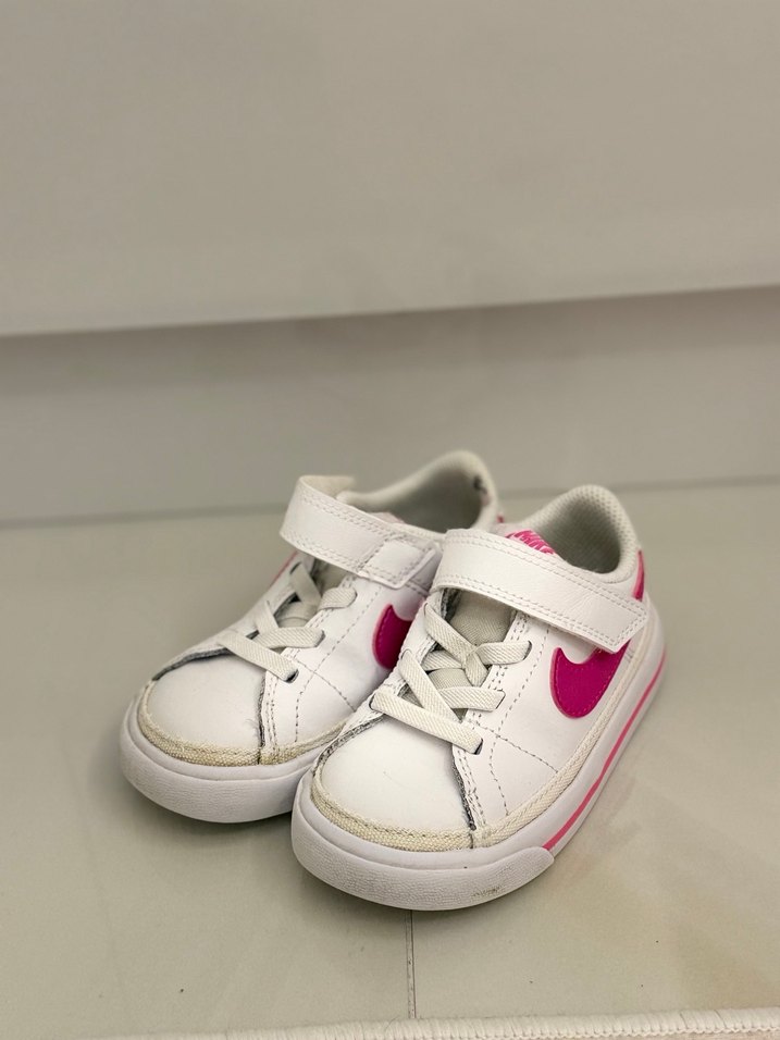 Kız çocukları için pembe ve beyaz renkli, cırtlı ve kauçuk tabanlı spor ayakkabılar, günlük kullanım için uygundur. 23.5 numara