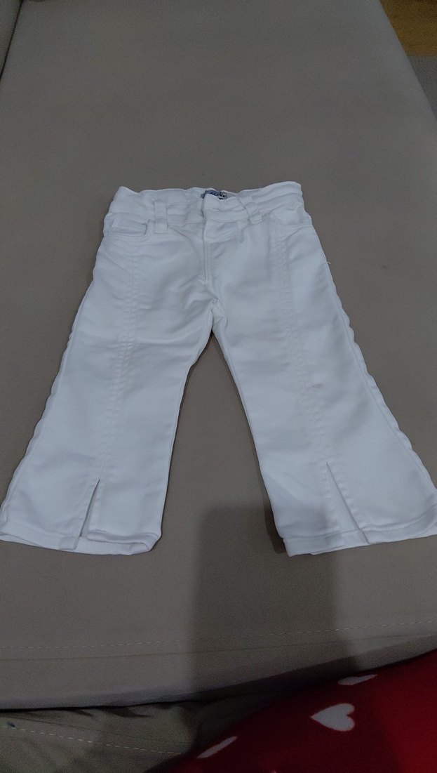 Kız Çocuk Beyaz Pileli Denim Pantolon