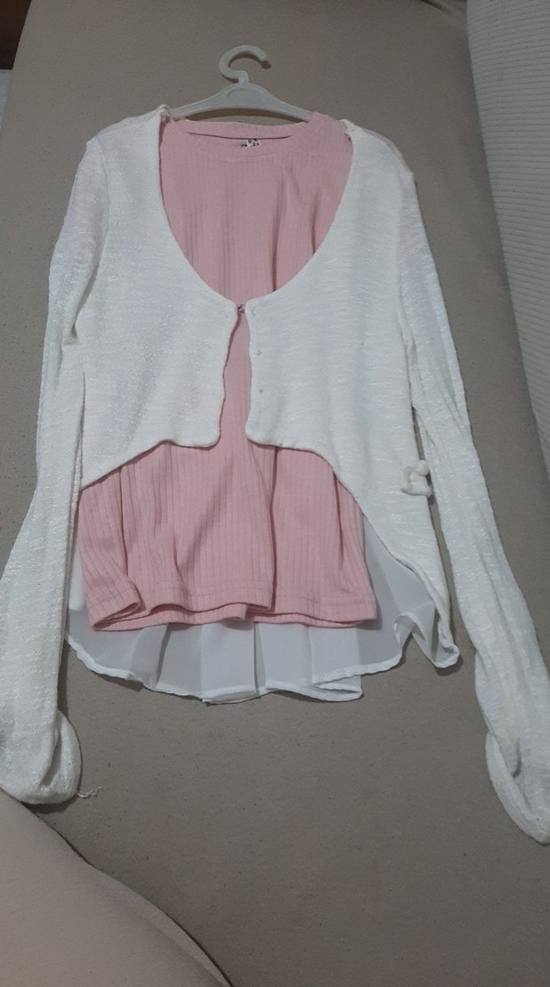 Beyaz renkli, uzun kollu ve bol kesim kız çocuk bolero, piliseli detaylarla yumuşak sentetik kumaştan üretilmiştir.
