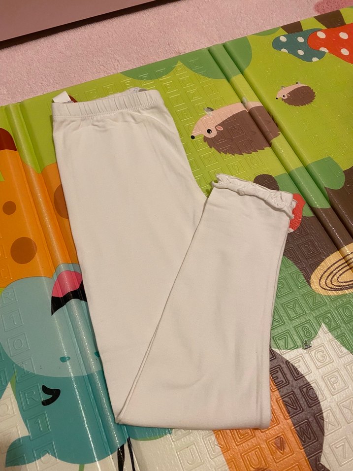 Kız çocuk beyaz, rahat kesim ve elastik bel bantlı, yumuşak ve paçasında detayı var