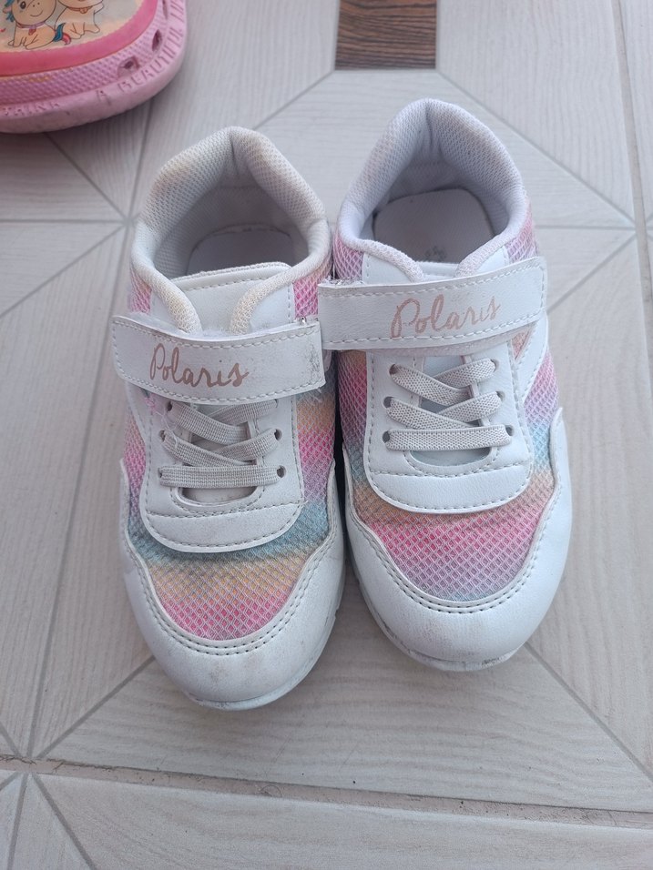 Kız çocukları için pastel renklerde tie-dye desenli, cırt cırtlı ve kauçuk tabanlı spor ayakkabılar. Üzerinde 'Polaris' yazısı bulunur.