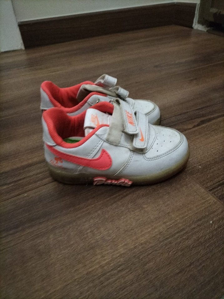 Beyaz renkli, renkli desenli ve cırt cırtlı kız çocuk spor ayakkabısı. Kauçuk tabanlı, sokak modasına uygun tasarım.