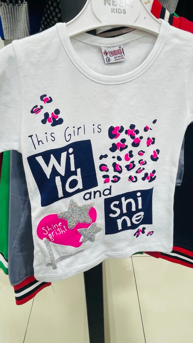 Beyaz renkli kız çocuk tişörtü, renkli baskı ve pul detaylarına sahiptir. Salaş kesim, kısa kollu ve yuvarlak yaka modelidir. ✨