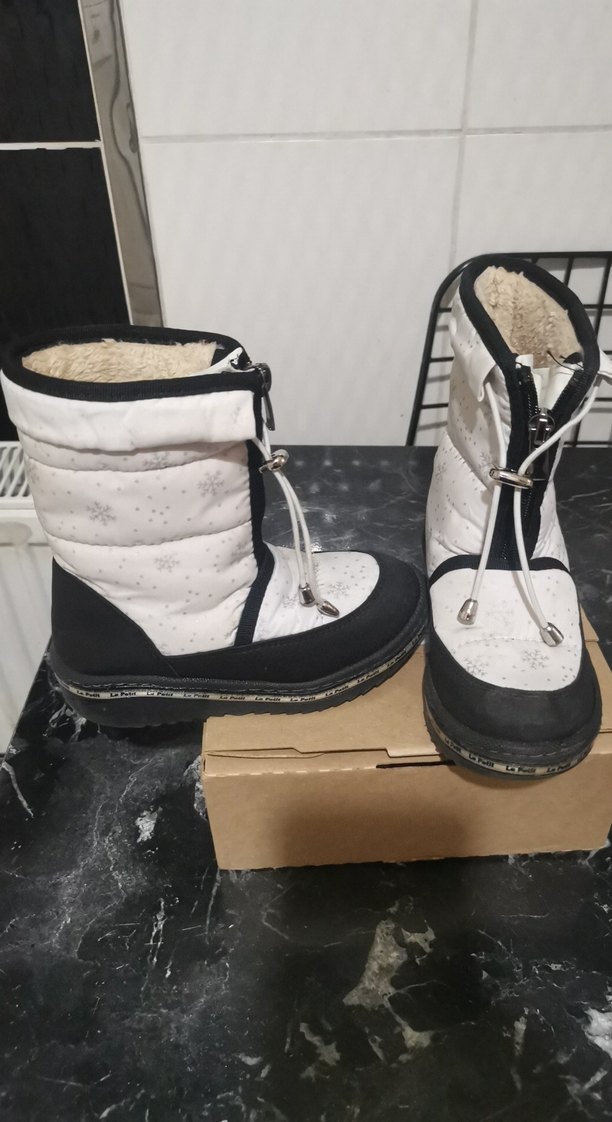 Kız çocukları için beyaz ve gri tonlarında, tokalı detaylı, sıcak astarlı kauçuk tabanlı sokak stili botlar. ❄️