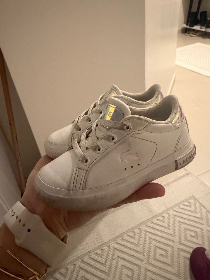 Kız çocukları için beyaz renkli, velcro bantlı ve kauçuk tabanlı street wear spor ayakkabılar. Düz, desen içermeyen şık tasarım. Ayakkabının herhangi yırtığı defosu vs yok kirli sadece göndermeden önce temizleyeceğim