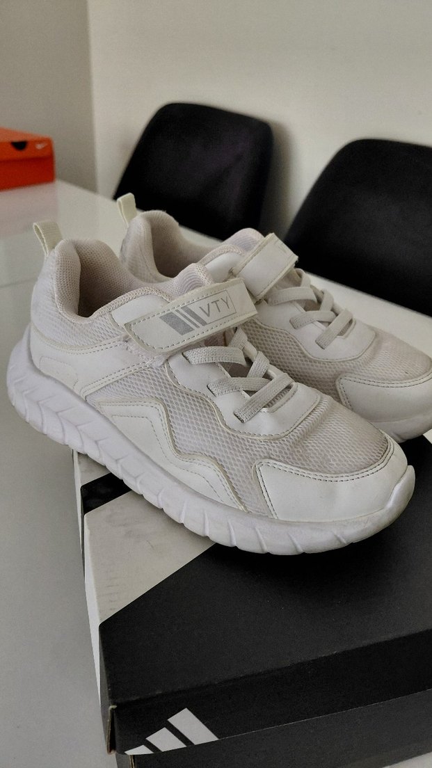 Cırt cırtlı beyaz kız çocuk spor ayakkabısı, kauçuk tabanlı, sokak stili için uygun, desensiz ve sade tasarım. Rahat ve kullanışlı. en fazla 5 defa giyilmiştir