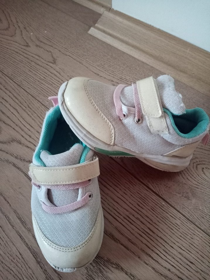 Numara değişikliğinden uygulamalıdır Rahat konforlu güzel bir üründür. Sadece ön kısmında hafif deformesi vardır.Beyaz kız çocuk spor ayakkabısı, pastel detaylı, Velcro bantlı ve kauçuk tabanlı, sade sokak stili için uygun. ölçü isteyebilirseniz Alana hayırlı ,uğurlu olsun