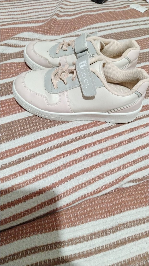 Beyaz kız çocuk spor ayakkabısı, velcro bantlı, kauçuk tabanlı, sade ve hafif tasarımlı sokak stili ayakkabı.