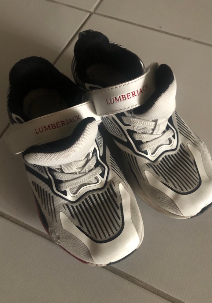 Beyaz kız çocuk spor ayakkabısı, kaymaz kauçuk tabanlı ve Velcro bantlı, gri detaylı sokak stili. Marka: Lumberjack.