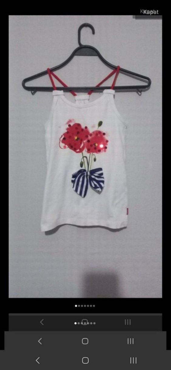 Kız çocuk için beyaz, straplez, baskılı ve fiyonklu atlet. Sentetik kumaştan, dar kesim ve fırfır detaylı, sokak modasına uygun.