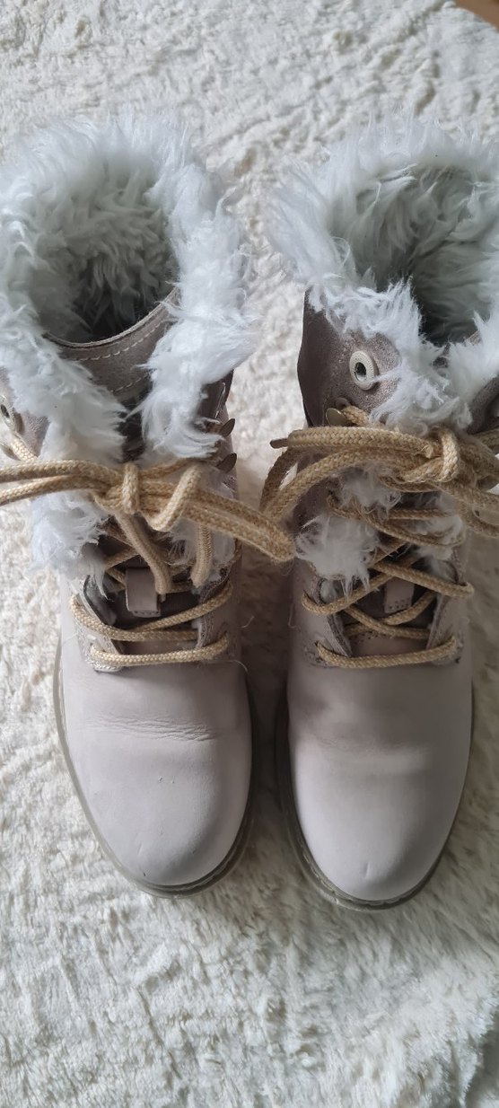 Kız çocukları için beyaz süet, bilek kısmında tüy detaylı botlar. ❄️ Az kullanılmış.