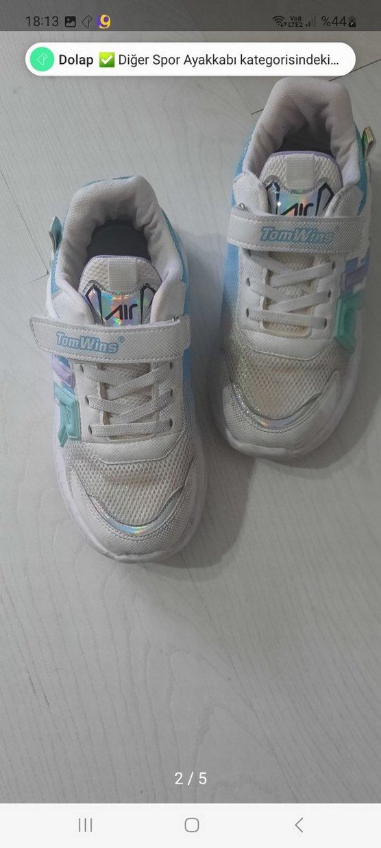 Beyaz ve renkli tie-dye desenli kız çocuk spor ayakkabısı, kolay kullanım için velcro bantlıdır. TomWins markasına ait, kauçuk tabanlı ve sokak stilinde bir modeldir.