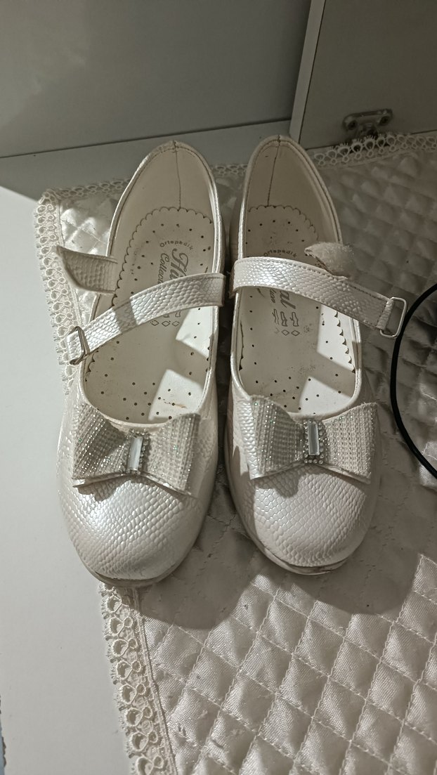 Beyaz renkli, tokalı bantlı ve yumuşak kauçuk malzemeden yapılmış kız çocuk babeti. Yılan derisi desenli ve klasik, geleneksel stilde fiyonk detaylı.