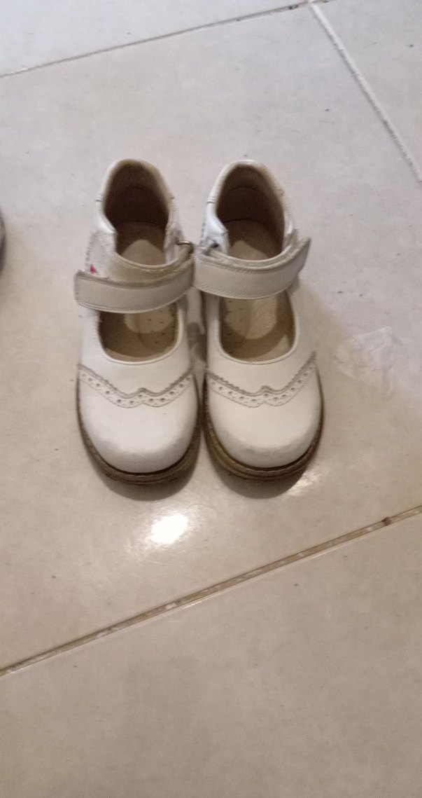 Beyaz renkli, tokalı kız çocuk babetleri. Kauçuk tabanlı, desen içermeyen klasik bir tasarıma sahiptir.