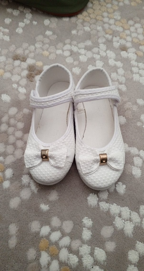 Tokalı bantlı, uç kısmında fiyonk detaylı beyaz kız çocuk babeti. Klasik, desen içermeyen, kauçuk malzemeden yapılmıştır. Bir kez giydirdim küçük geldiği için satıyorum