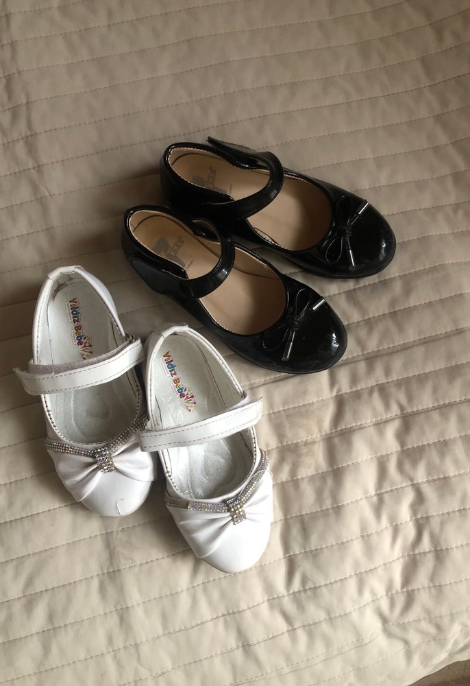 Kız çocukları için tokalı bantlı, sade ve o klasik tasarımlı beyaz babet ayakkabılar. Konforlu kauçuk tabanlı, geleneksel stile sahiptir. Siyah. Ayakkabı blr defa giyildi doğum gününde Beyaz. Bir kaç kez giyildi. İyi durum da iki 26 numara
