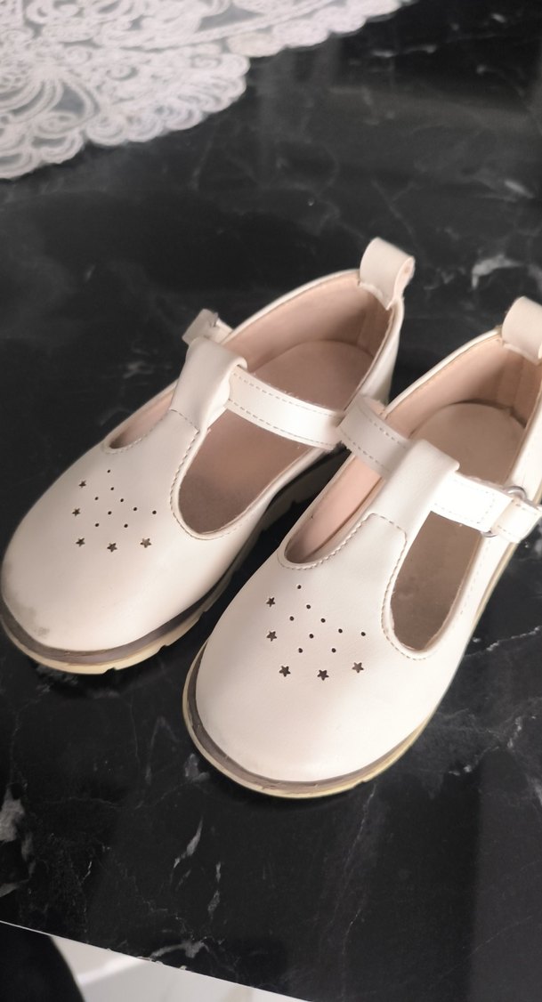 Kız çocukları için tokalı, yıldız desenli delikli beyaz babet ayakkabı. Lastik malzemeden yapılmış, sade ve klasik tasarım.