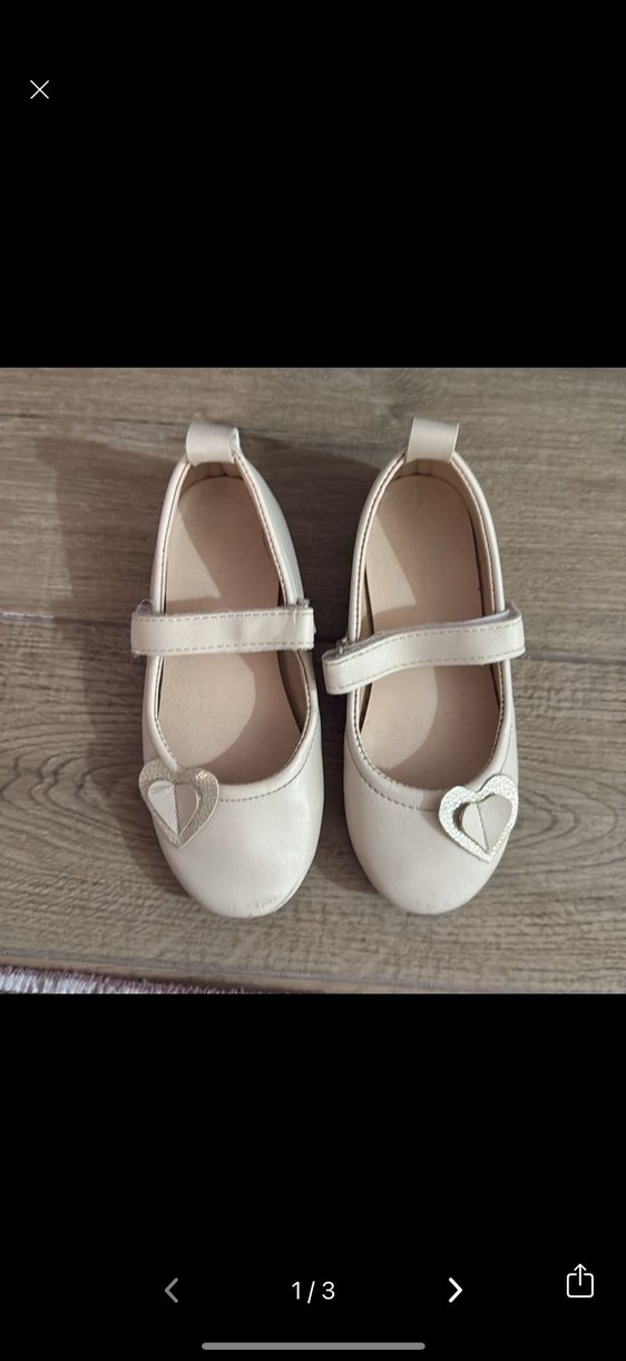 Beyaz renkli, tokalı ve kalp detaylı kız çocuk babet ayakkabısı. Kauçuk malzemeden üretilmiş, sade ve desensiz tasarım.