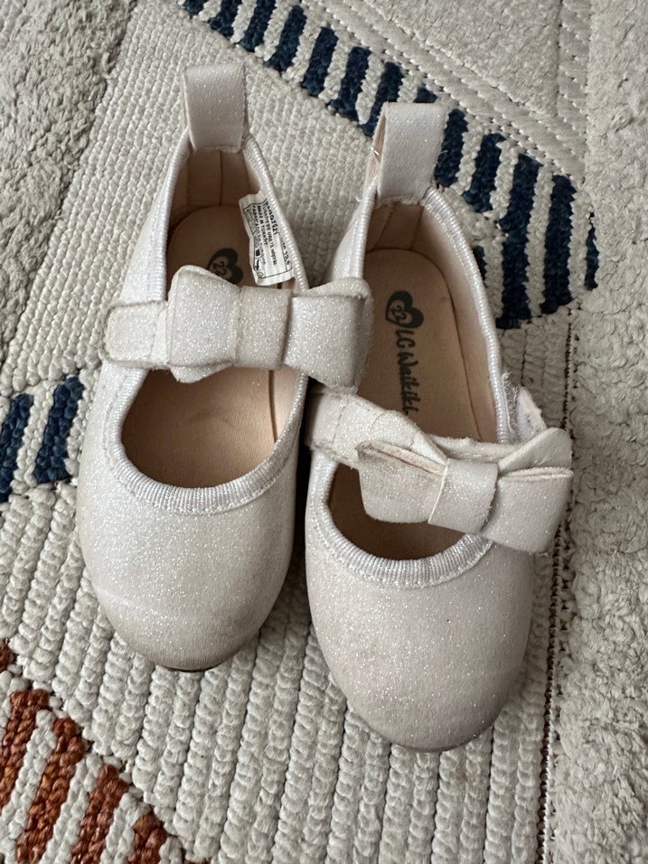 Yumuşak kauçuk malzemeden yapılmış, tokalı beyaz kız çocuk babetleri. Fiyonk detaylı sade tasarım, klasik ve bohem stil sunar.