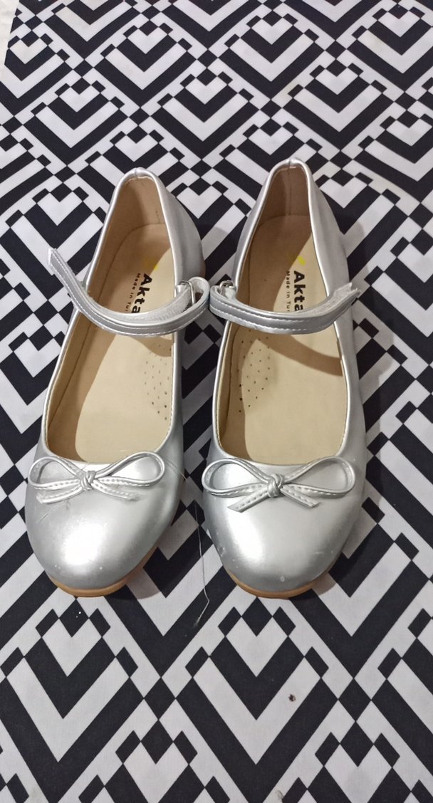 Kız çocukları için tokalı kayış ve küçük fiyonk detaylı beyaz babet ayakkabı. Düzgün kauçuk malzemeden üretilmiş, rahat ve şık.