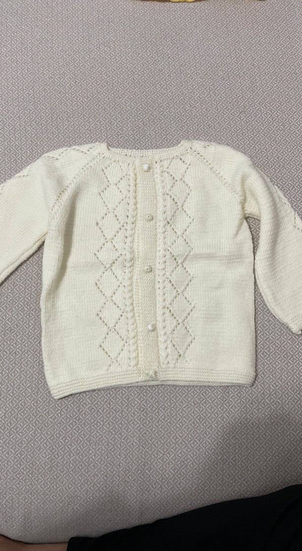 Kız çocukları için beyaz renkte, örgü desenli, uzun kollu ve regular fit klasik tarzda bir triko hırkadır. Düğmeli kapanışı vardır.