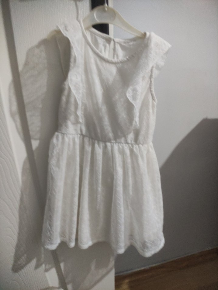 Kolsuz, tul kumaştan yapılmış beyaz elbise. Bol kesim ve fırfır detayları bulunur. yuvarlak yaka ve sade, bohem tarzda. kizim cok severek giydi