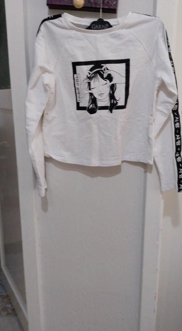 Kız çocuk için uzun kollu, bol kesim ve bisiklet yaka tişört. Ön kısmında baskılı grafik ve kollarda yazı detayları bulunur. Hafif, sentetik kumaştan üretilmiştir.