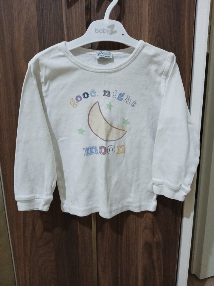 Kız çocukları için pamuklu, uzun kollu, yuvarlak yakalı ve bol kesim beyaz tişört. Pastel renkli 'good night moon' baskısı ile rahat ve şık görünüm sağlar.