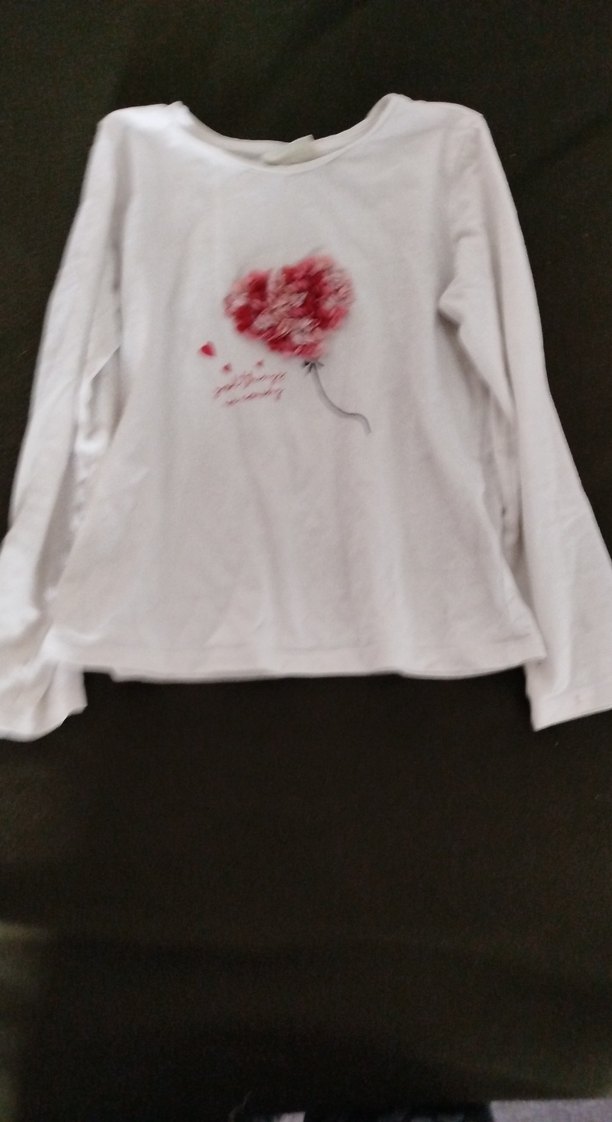 Pamuk kumaştan yapılmış, beyaz uzun kollu kız çocuk tişörtü. Düğmeli, bol kesim ve yuvarlak yakalı, pastel renkli baskı detayına sahip.