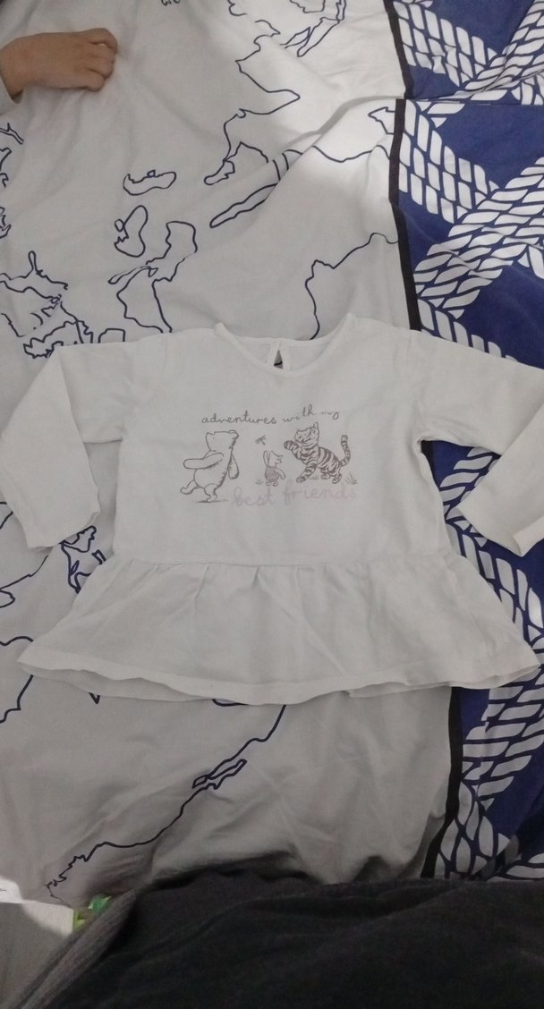 Pamuklu, beyaz, uzun kollu kız çocuk tişörtü. Bol kesim, fırfır detaylı ve bohem tarzda baskılı tasarıma sahiptir. Rahat yuvarlak yaka bulunur. hepsi 100₺ 10 parça bebek kıyafeti