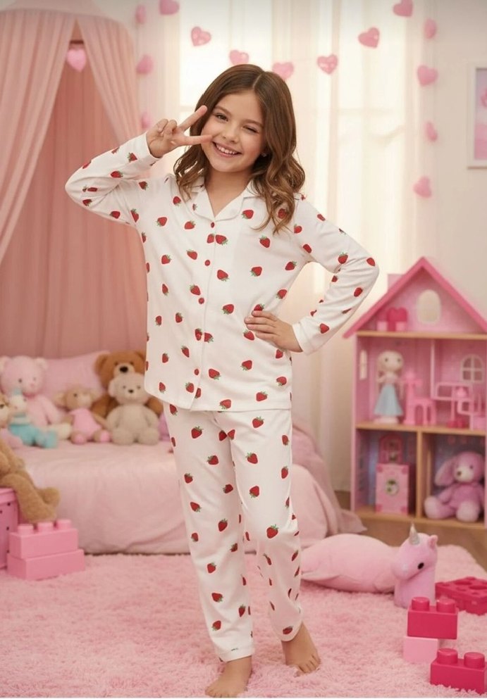 Kız Çocuk Beyaz Uzun Kollu Pamuklu Pijama