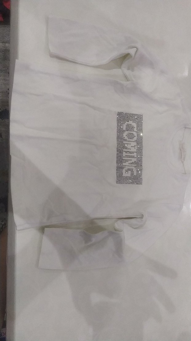 Beyaz renkli kız çocuk tişörtü, uzun kollu ve bol kesimdir. Yuvarlak yaka ve payetli baskı detayıyla sokak modasına uygundur. Sentetik kumaştan üretilmiştir. 5 yaş uygundur