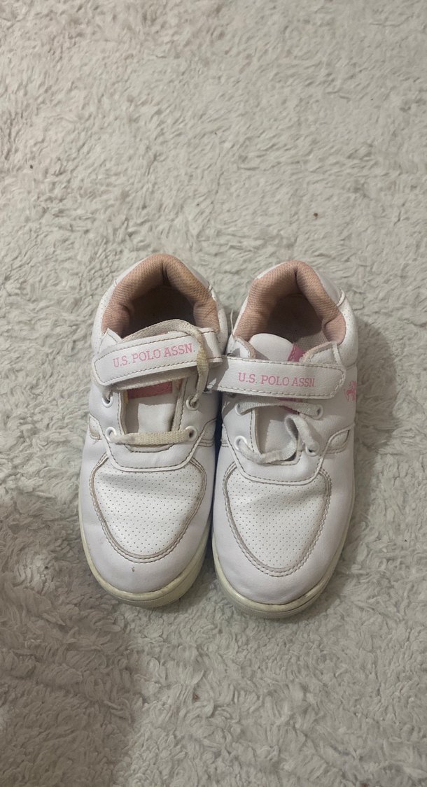 Beyaz, Velcro bantlı kız çocuk spor ayakkabısı. Lastik malzemeden, trend sokak giyimine uygun sade tasarım. Marka: U.S. POLO ASSN.